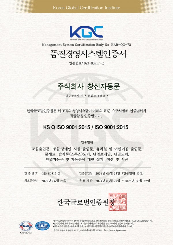 ISO인증서-(주)창신자동문 9001,14001,45001-1 작성자최고관리자 댓글 0건 조회 192회 작성일 24-10-21 16:58 ISO인증서-(주)창신자동문 9001,14001,45001-1 목록 이전글(주)창신자동문 기본서류 시험성적서 #1 24.10.21 다음글연구개발전담부서 인정서 24.10.21 댓글목록 등록된 댓글이 없습니다.